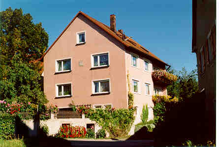 | Renkenberger Johann Georg ist der Sohn des Köblers Michael Renkenberger in Volkertsweiler. Die Hochzeit ist am 18.1.1707 mit Maria Wagner, der Tochter des Vorgängers Caspar Wagner. Sie ist am 3.3.1680 geboren. Johann Georg Renkenberger, der den Hausnamen dieses Anwesens gepägt haben dürfte, ist am 13.5.1745 im Alter von 73 Jahren verstorben, die Ehefrau am 18.4.1755. | |