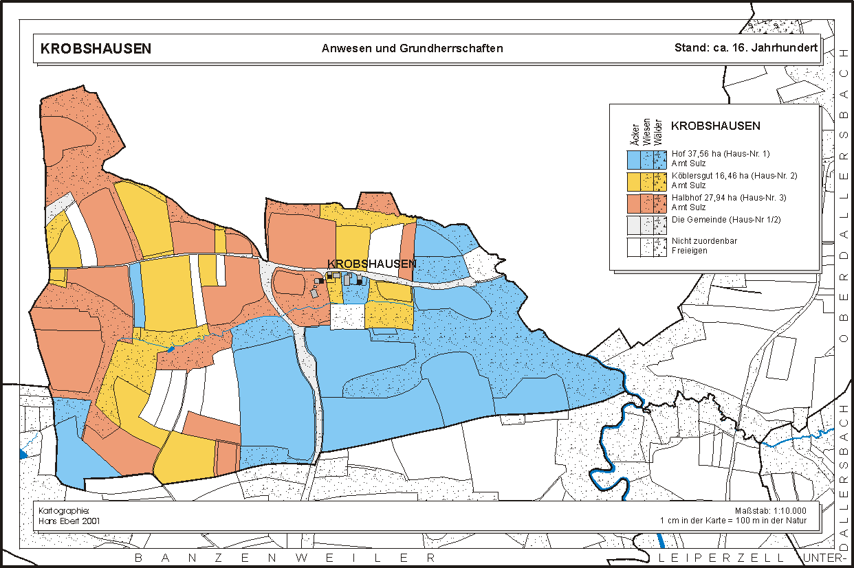 Aufgrund des Urkatasters rekonstruierte ursprüngliche Besitzverhältnisse (ca. 16. Jahrhundert)