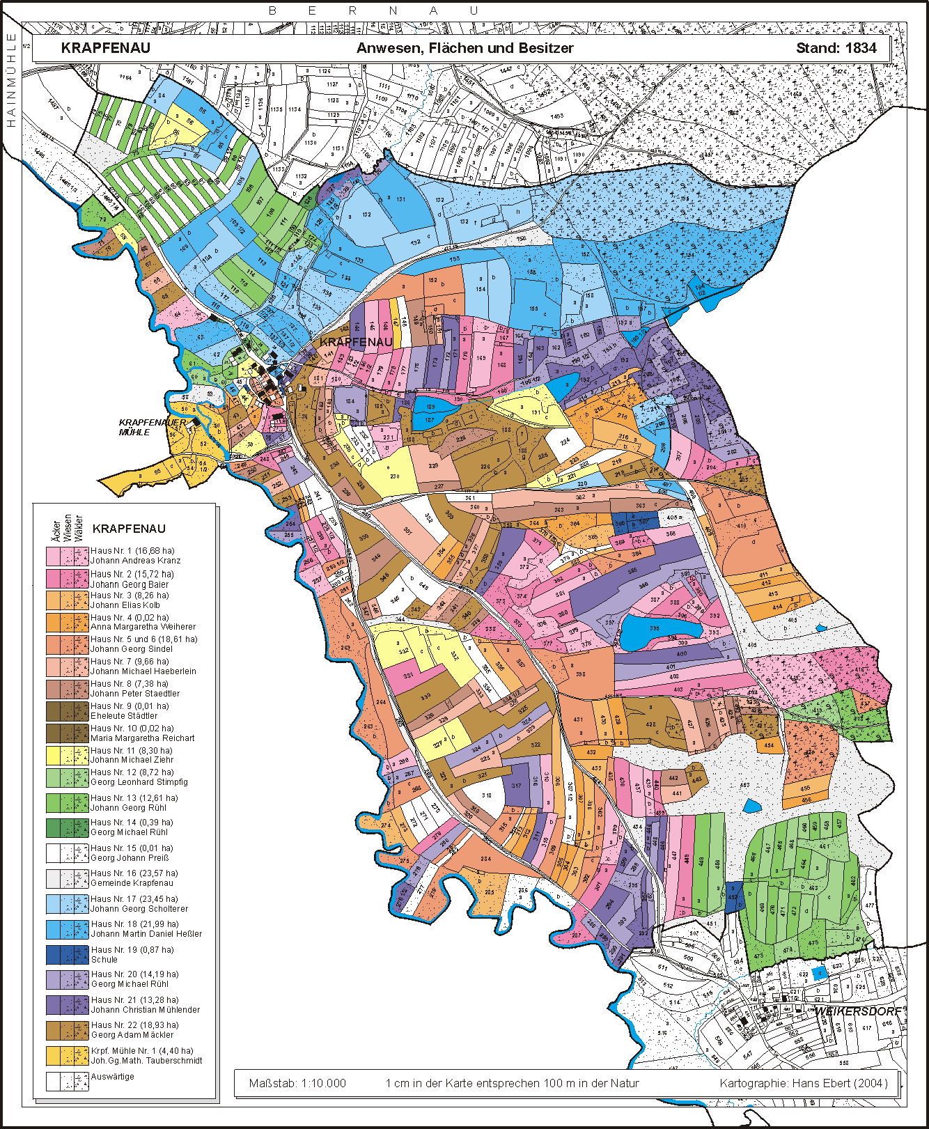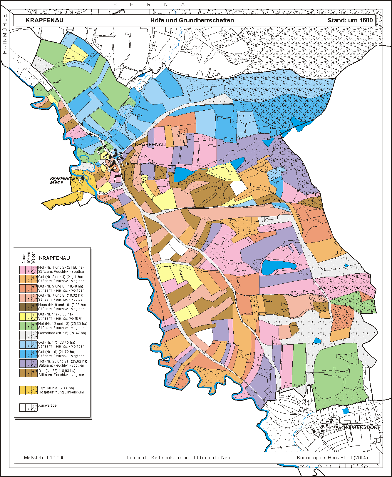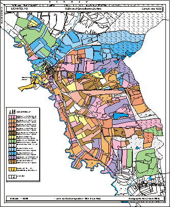 Aufgrund des Urkatasters rekonstruierte ursprüngliche Besitzverhältnisse (ca. 16. Jahrhundert)